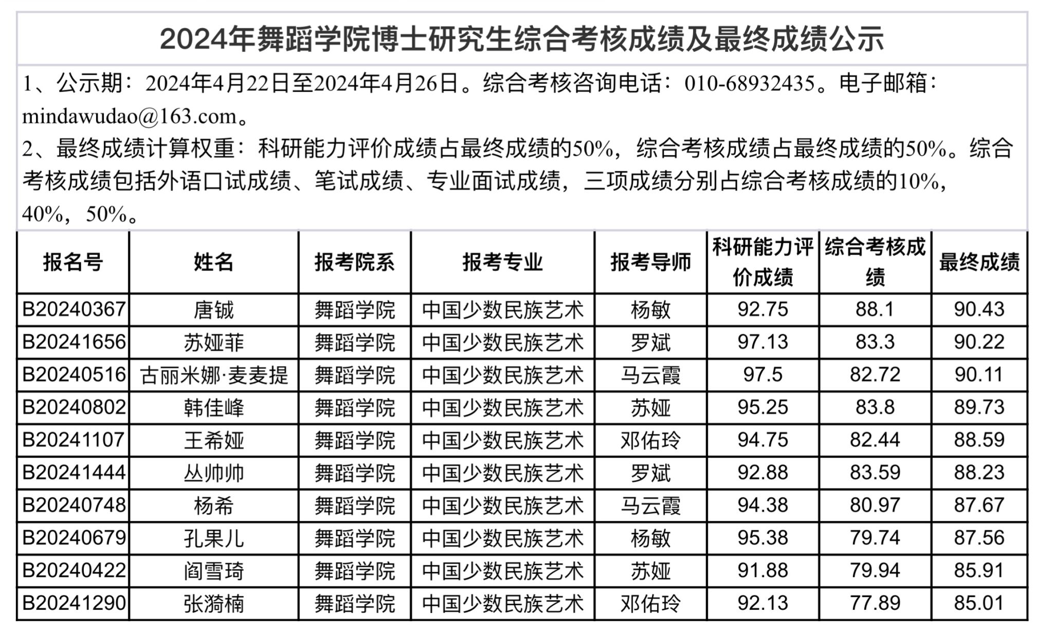 2024年动漫花园 博士研究生综合考核成绩及最终成绩公示