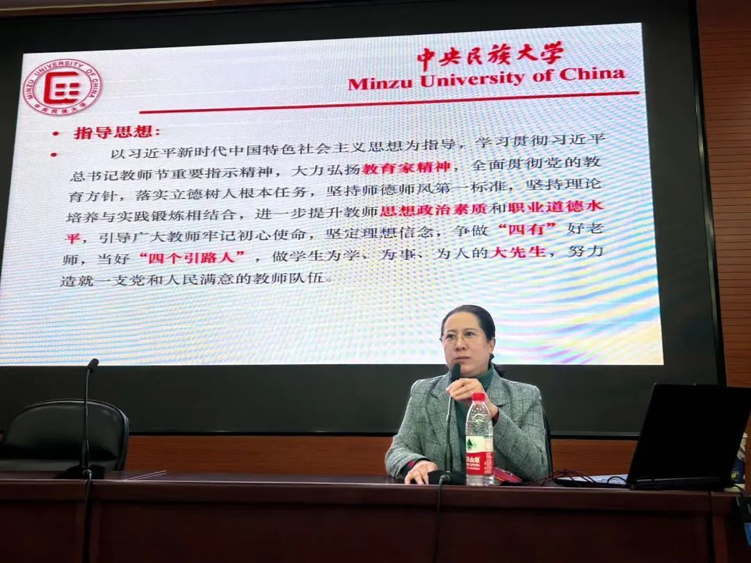 马娟书记从习近平总书记关于师德师风的重要论述为切入点,围绕习近平总书记教师节重要指示精神展开,着重强调了学院师德师风的建设。她指出,高校教师作为先进文化的传播者、党执政的坚定支持者,应更好的担当起学生健康成长的指导者和引路人的责任。她强调,学院全体教职工要把立德树人、教书育人贯彻落实到实际教学中,探索教学理念和教学方法的转型升级,同时,大力弘扬教育家精神,牢记为党育人、为国育才的初心使命,树立“躬耕教坛,强国有我”的志向和抱负,自信自强、踔厉奋发,争做“四有”好老师,当好“四个引路人”。