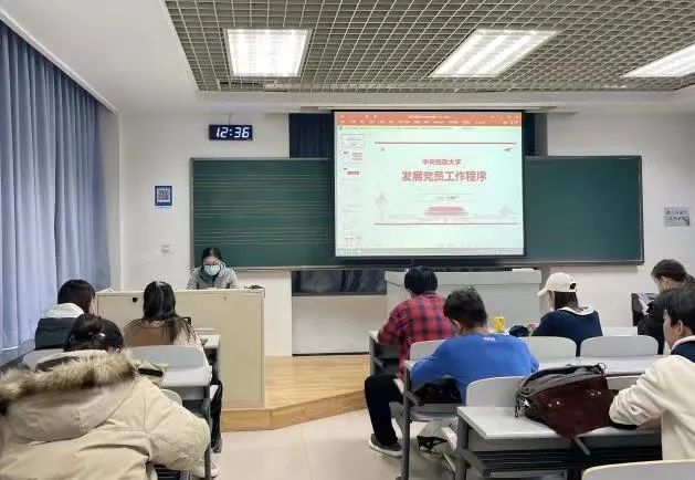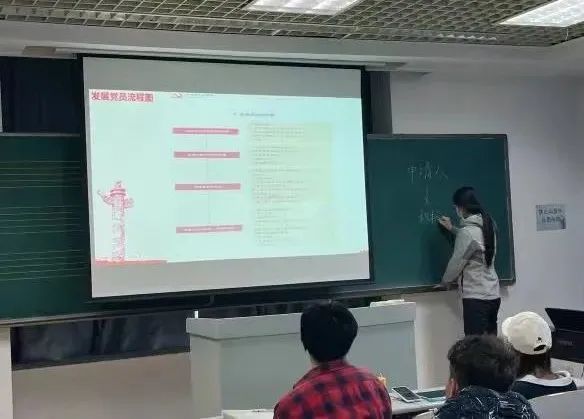 党课伊始,李慧娟为全体学员介绍了党员发展工作的具体流程,主要有申请入党、入党积极分子的确定和培养教育、发展对象的确定和考察、预备党员的接收、预备党员的教育考察和转正等步骤。李慧娟指出,作为入党积极分子要树立好共产主义远大理想,不断增强实现中华民族伟大复兴的必胜信心,在思想态度上做到端正入党动机,在实际行动上践行初心使命,争取早日入党。