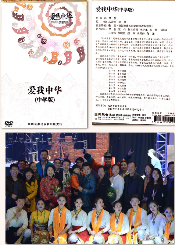 及海淀区教委承办,本人与赵帅合作编创的《爱我中华韵律操》系列,由北京市教委全面推广。韵律操依据年龄特点共有三个版本:活泼轻快的小学版《花开中华》、动感十足的中学版《爱我中华》以及极具韵味的大学版《多彩中华》。该套韵律操根据我国各民族特色,结合民族舞蹈素材和广播体操的结构所编创。其中包含汉族、藏族、蒙古族、维吾尔族、傣族、朝鲜族、佤族、彝族及古典舞身韵的典型舞蹈动作和特色音乐组成。该套韵律操研发自2011年,至今已有十年,成为我校各专业新生入学的“必修课”,并在国内(包括台湾)很多城市的中小学、大学得到广泛的推广和使用。