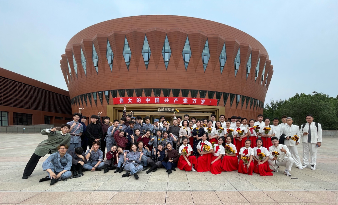 6月23日,在民大舞院辅导员李飞老师的带队下,30名本研学生前往清华大学新学堂,参加了由中共北京市委教育工作委员会、北京市教育委员会主办的“首都教育系统庆祝中国共产党成立100周年主题教育《在灿烂阳光下》演出并出演舞蹈作品《抗争》。