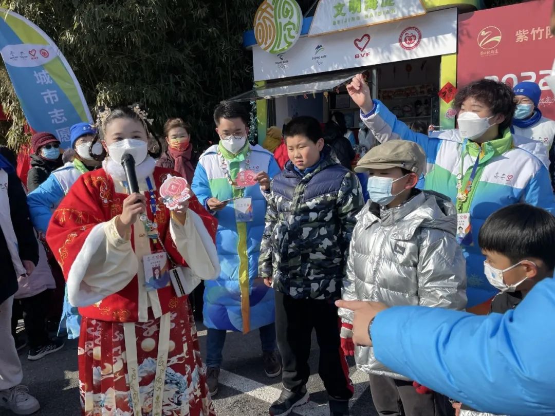 随着中国队在北京2022年冬奥会频出佳绩,人们对冬奥会的热情持续高涨。冬奥会又恰逢中国传统佳节元宵节,为营造冬奥和元宵节的氛围,紫竹院冬奥城市志愿者服务站开展了元宵节主题活动。现场与顶流明星“冰墩墩”合照留念!参与我们的猜冬奥灯迷活动,领取精美小礼品。当天的我身着红色汉服进行冬奥城市志愿服务,为服务站点增添年味。