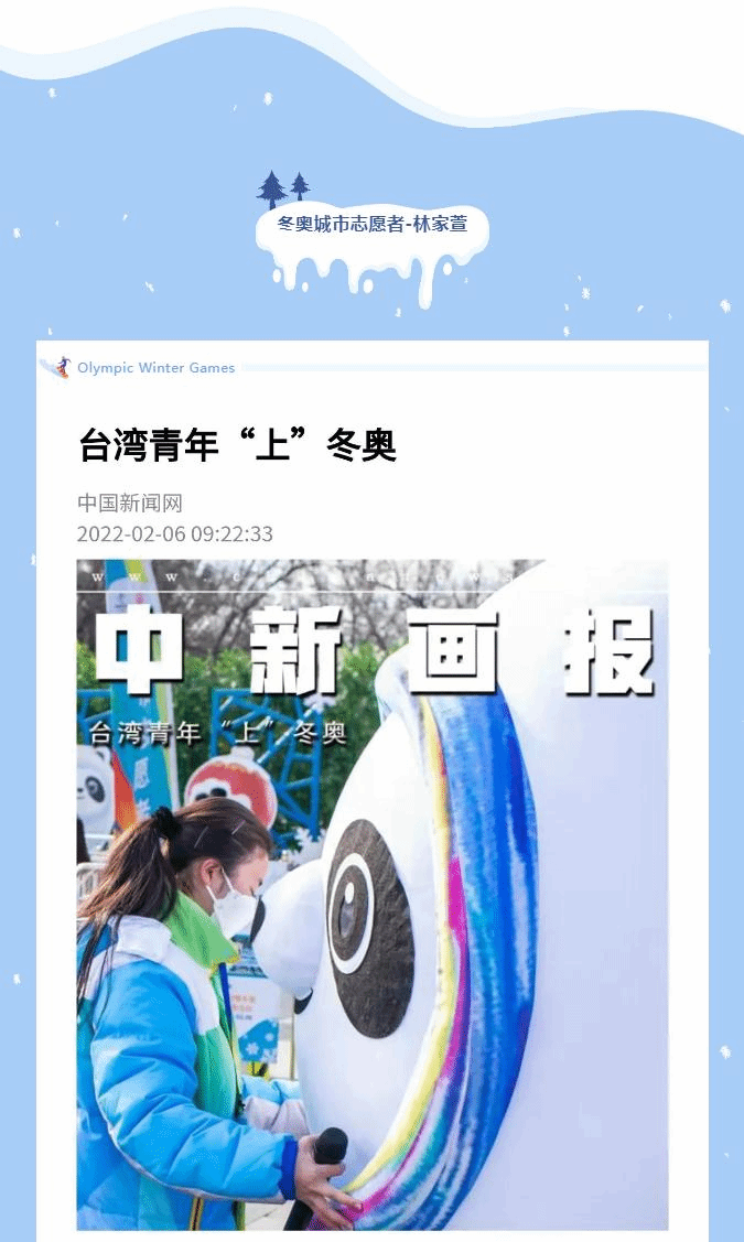 的研究生林家萱,作为台湾青年代表参加了台湾青年冬奥城市志愿者服务队。