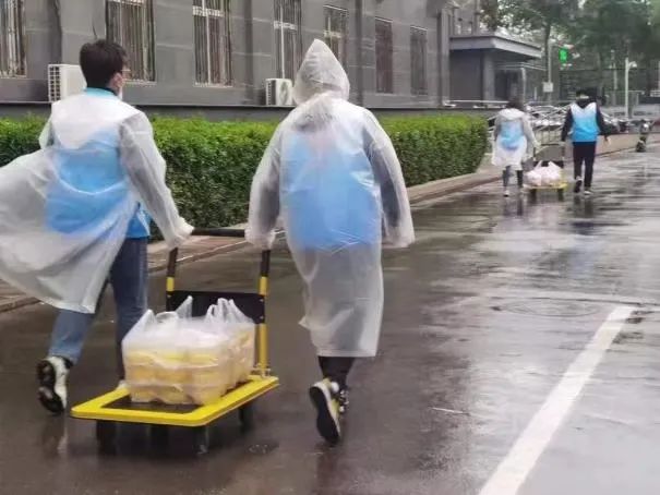 4月26日晚上接到校团委紧急通知——八号公寓楼进入封闭管理状态,次日要进行全校的疫情演练。这场突然袭来的疫情打得人措手不及,但身为一名学生党员,我临危不乱、主动担当,在此紧要关头,我毅然请缨参与疫情防控志愿工作。在校团委老师的带领与安排下,我们召开紧急会议,有条不紊地规划了八号楼的送餐与疫情演练安排,解答了同学们有关疫情防控的相关问题,并安抚了同学们的情绪。每天早上七点开始,一天的送餐服务就开始了。