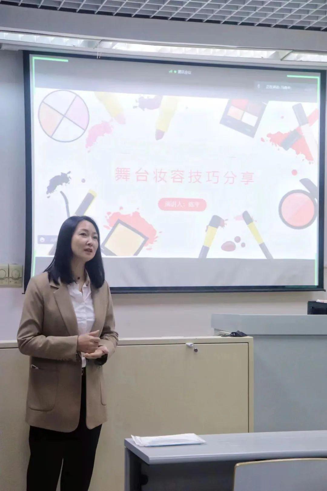 研究生会副主席马嘉辛主持。此次分享会邀请2018级本科现就读2022级研究生陈平同学作为主讲嘉宾,通过对舞台妆容、造型的讲解与培训,让同学们在演出需要时能更好、更快速地进行自我妆造,提高同学们的妆造技巧。
