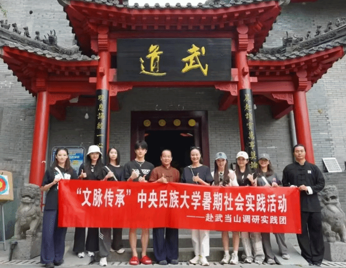 “赴湖北省十堰市武当山罡步调研实践团”,在杨希老师的带领下,于武当山开展为期一周的武舞身体文化调研实践。团队以“武舞同源、和合之美”为核心主题,通过参观古建筑群、观摩仪式、习练武术、探访博物馆等多元实践,在身体感知与文化探源中,明悟中国传统文化之大美。