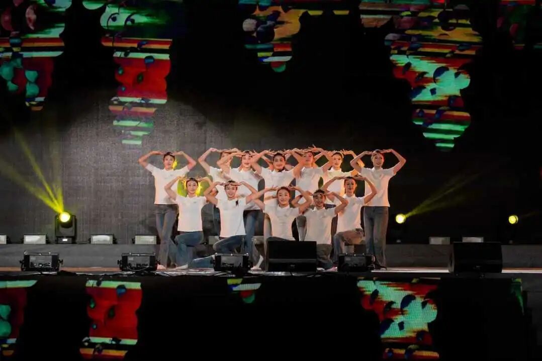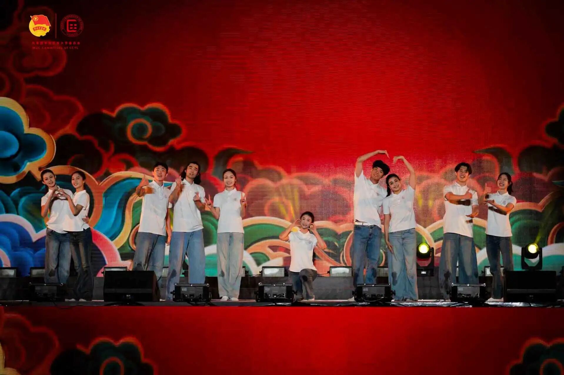在《同唱颂歌》中,同学们与兄弟院系默契配合,以艺术语言唱响团结乐章;在长达21分钟的《光影回忆》里,他们用富有感染力的表演,精准刻画了各个时代的鲜明印记;在《多彩校园》的环节里,同学们更是在《交融世界》《大河之子》等不同风格的舞段中自如切换,通过肢体语言展现了中华文化的博大与包容;最终,晚会在动漫花园