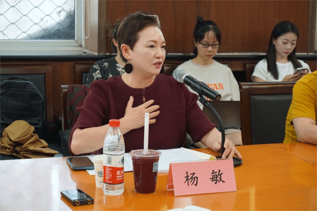 点评结束后,杨敏教授代表课题组各位成员,对莅临的各位领导和专家表示诚挚的感谢。杨敏教授表示,从2021年10月项目开题以来,得到了各位领导与专家的大力支持。2020年到2023年间,以课群建设为基础,通过实践方式进行案例分析,开展课题会议共计26次,其中前期项目组成员30人,中期成员43人,在此过程中课题团队不断完善修改整体架构,并在此期间完成了一系列相应学术成果。此次中期阶段性成果汇报,让我们了解到课题组在研究实践中所展现出的认真务实的作风与严谨的学术精神。今后的工作仍然任重道远,相信在学校和学院的大力支持下,在各位专家们的指导和课题组成员的努力下,一定会按期高质量地完成项目,并通过此项课题研究来推动成果的转化与运用,进一步推动学院国家社科基金课题科研工作向高质量方向迈进。