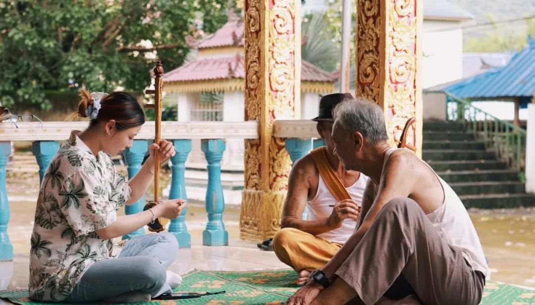 团队采访了多位省级、市级非物质文化遗产传承人,学习古乐舞的同时,感受老艺人们对“宾弄赛嗨”的内在理解,此次交流学习是舞蹈院校与民间艺术的精彩碰撞,我们也得以⾛进民间艺术家背后的本真⽣活,去探寻与感悟民族舞蹈的“本源”,在相互的交流中进⼀步思考传统民间舞蹈的传承与创新。