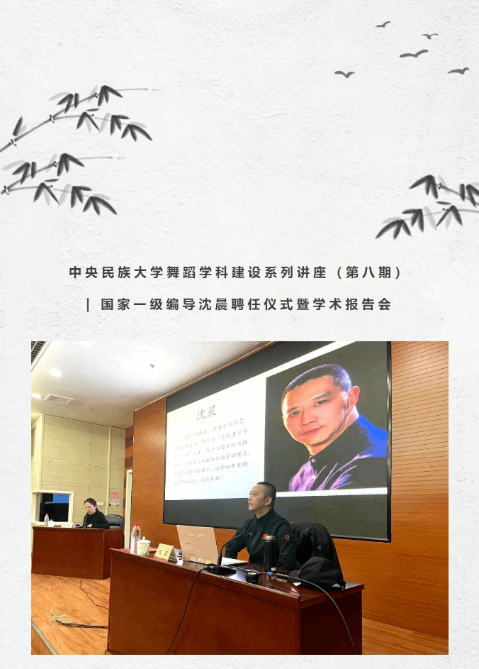 沈晨导演还邀请了中国东方演艺集团的编剧孙磊老师参与本次讲座,并向师生分享了其于2014年创作的作品。他还提倡师生应多关注电影、电视剧等以视觉为主的不同艺术作品,重视文学文本对于舞蹈创作的重要性,鼓励多参与专业实践活动,以达到开阔眼界、启迪思维、夯实技能的目的。