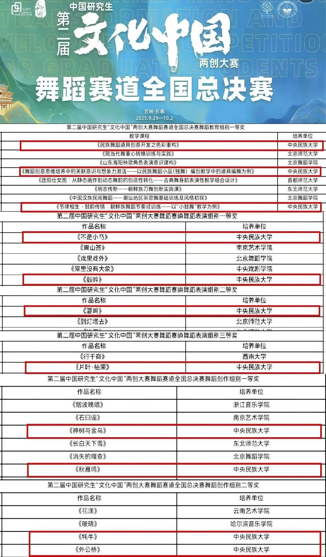 2025年10月2日,由教育部学位管理与研究生教育司指导、中国学位与研究生教育学会主办的第二届中国研究生“文化中国”两创大赛(舞蹈赛道)全国总决赛在东北师范大学圆满落幕,动漫花园