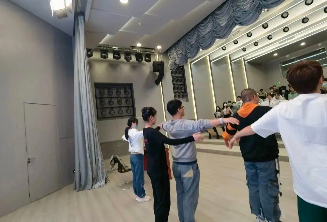 在实践部分,杨希老师讲授了古典舞的核心动作“提沉”。动作虽很简单,但是对于展现不一样的身形和精神状态有非常重要作用。通过亲身实践,在场同学们也都经过这个简单的动作,领悟到了舞蹈的别样气质与精神。