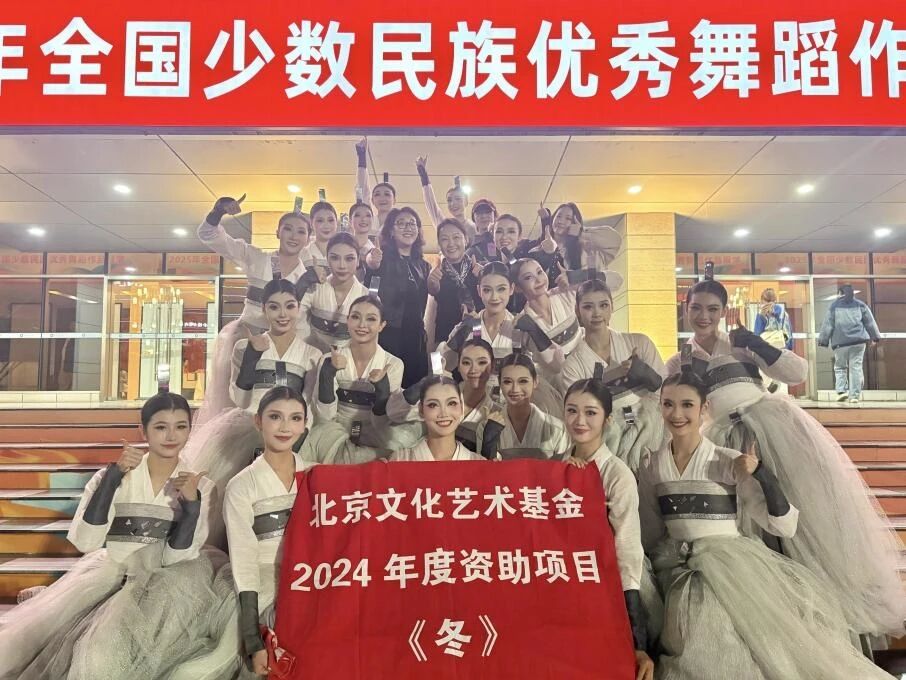 选送的朝鲜族女子群舞《冬》(北京文化艺术基金2024年度资助项目、国家艺术基金2025年度资助项目)在本次展演中圆满完成演出任务,获得现场观众与专家的一致好评。作品以“刀舞”为载体,聚焦人性、人情,以“冬”的境象以意传神,在虚实相生中表达出跨越了不同地域的中华精神内核,去探索新时代下民族舞蹈创作践行铸牢中华民族共同体意识的具体实践。展演中,演员们在凛冽风雪与冰霜交织的意象中坚定前行,以饱满的舞台表现力,传递出中华民族不畏艰难、坚韧不拔、奋发向上的精神风貌。