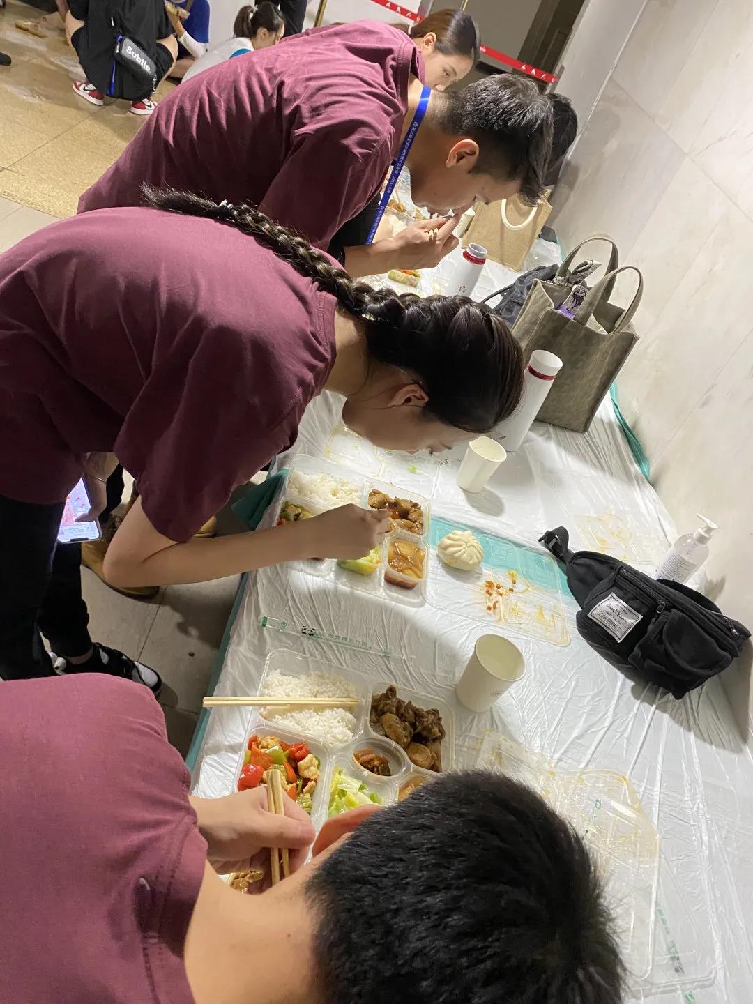 排演期间,姜铁红副院长、王淼副书记及各位领队教师积极带头,以观看排演、与学生谈话、召开会议和走访宿舍、食堂等方式,了解学生排演和管理服务情况,及时发现问题、解决问题;加强与后勤保障部门沟通,及时解决学生反映的吃饭、洗澡等生活问题,全力跟进学生们的排练及日常生活,帮助同学们调整状态。他们不辞辛苦,与同学们一起起早贪黑,坚守在岗位,为此次活动奉献出自己的精神与力量。