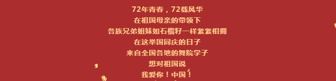 中华人民共和国七十二岁华诞,在万众期盼的目光中向我们阔步走来,最难忘的,是1949年的那个秋天,天安门广场上,欢乐的人群联成了红彤彤的一片。最难忘的,是开国大典的那个夜晚,缤纷的礼花中,依稀可见无数先烈们欣慰的笑颜。不能忘记啊,天安门城楼上那洪亮的声音,向全世界郑重宣告。看,真心的祝福插上翅膀,同展翅的和平鸽一起自由翱翔。听,欢庆的歌声随风远扬,把颂歌献给祖国、献给人民、献给亲爱的党。祝福我们的民族团结奋进,祝福我们的祖国繁荣昌盛。
