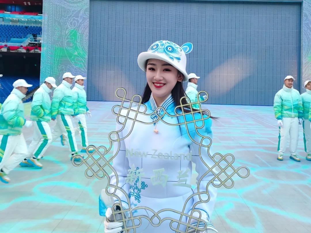 很荣幸能够参加这次2022北京冬奥会,成为新西兰代表团引导员。走到播报位的时候真的很感动,自己这五个月的努力没有白费,在训练的日子里我们没有假期,举引导牌举半个小时,拿下牌子的时候胳膊是没有感觉是麻的,训练站姿的时候站了两个小时脚和膝盖没有知觉,没有一句埋怨的话,一切都是值得的。