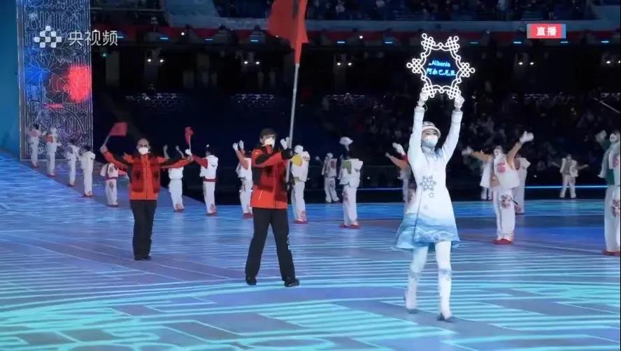 2020级表演女班张梦颖及2020级英才女班刘思雨两名学子作为阿塞拜疆代表团引导员及新西兰代表团引导员,迈着自信的步伐向观众走来,向世界走来,她们是冬奥会开幕式上一道亮丽的风景,向世界展现了中华民族意气风发、朝气蓬勃的精神面貌。
