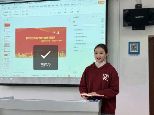 团委副书记、2025届支教团成员、青马班成员学员张彧萱进行了宣讲。她表示,作为学生干部,我们不仅要深入研习党的理论知识,还要提升自身综合能力,要主动扎根于人民群众之中,积极融入生活,从中汲取养分、积累经验。同时,以身作则、敢为人先、吃苦耐劳也是学生干部应当秉持的重要品质,要在日常学习与生活中发挥模范带头作用,以实际行动践行责任与担当 。